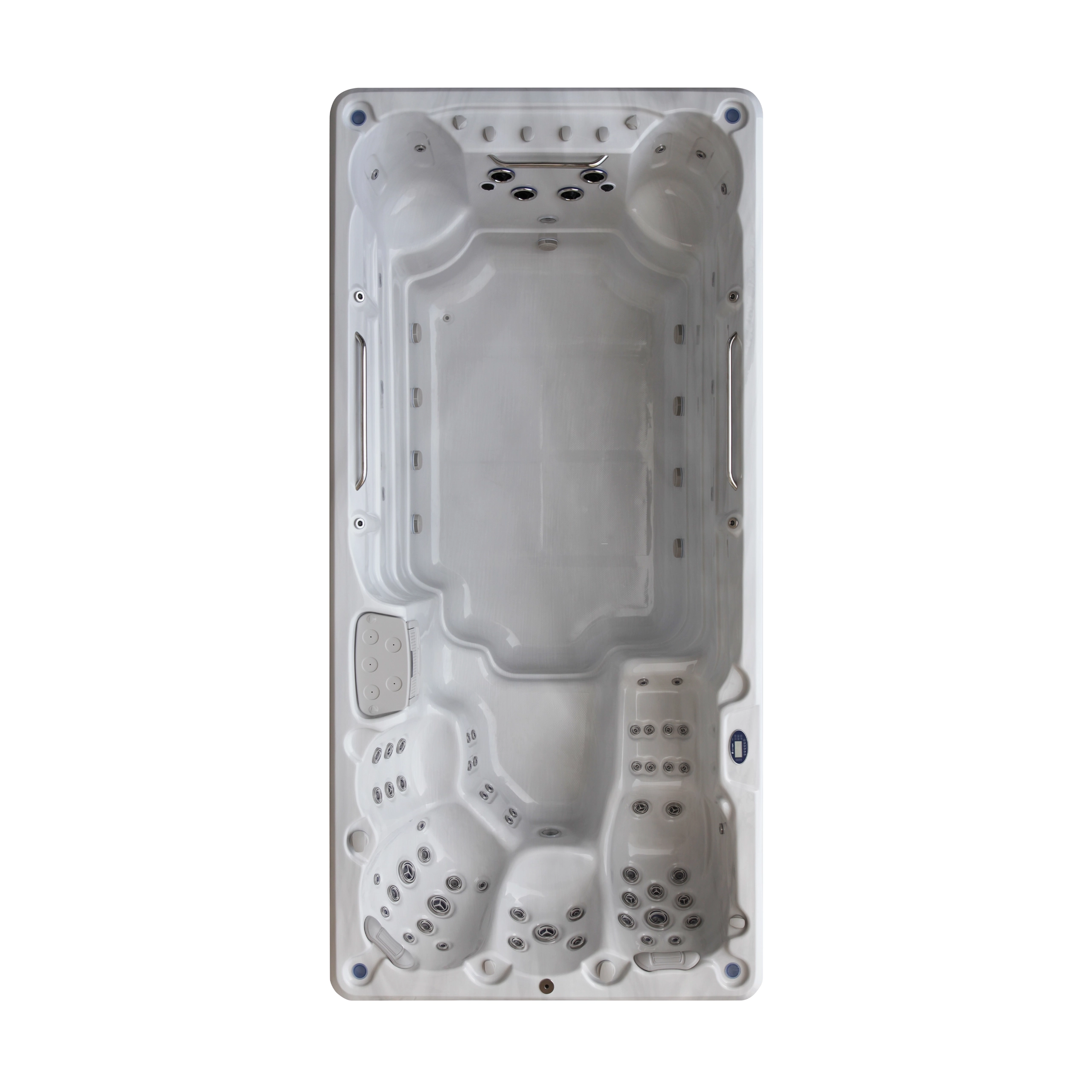 Jets à LED inox + cascade inox, aromathérapie, combo lampe UV + ozonateur, compartiment à bouteille de série